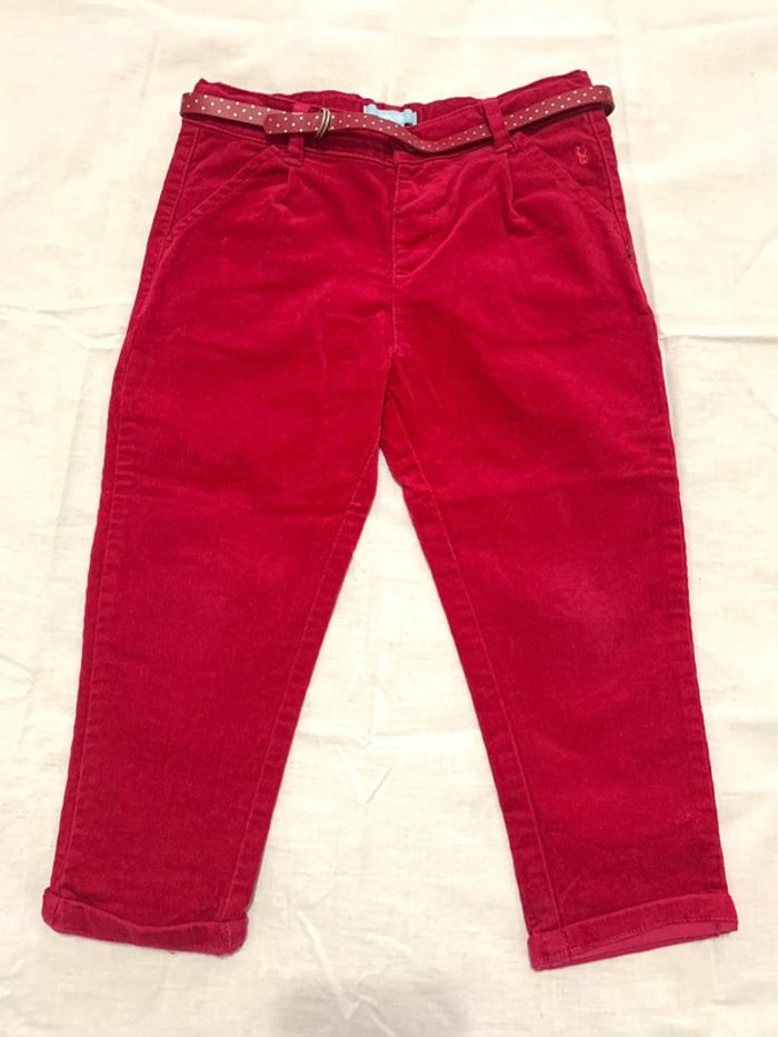 Pantalon velours rose avec ceinture Obaïbi en très bon état taille 3 ans (98 cm), taille ajustable #hbifille3ans