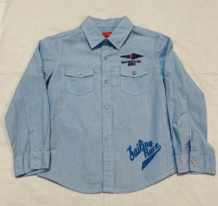 Chemise à manches longues Tissaia en très bon état taille 5 ans les manches longues se retroussent en manches courtes #hbigarcon5ans