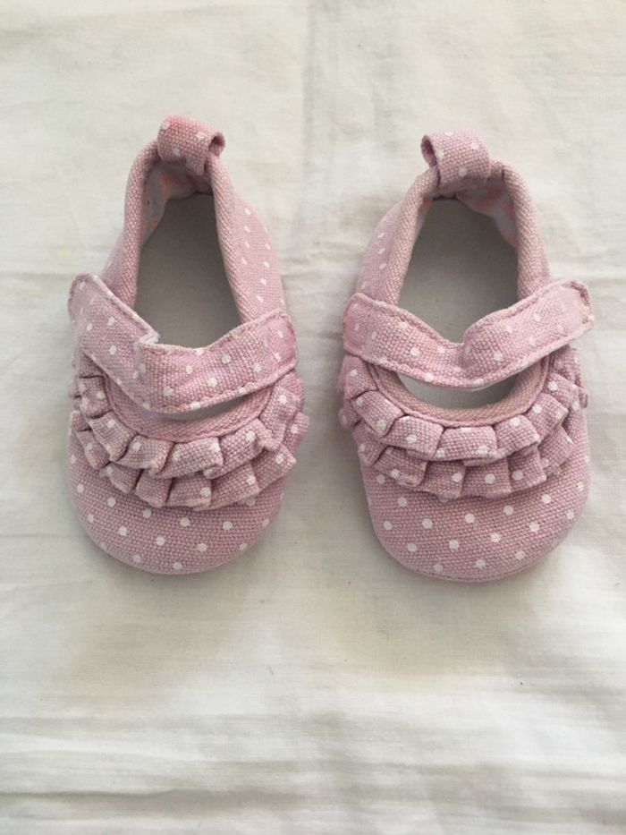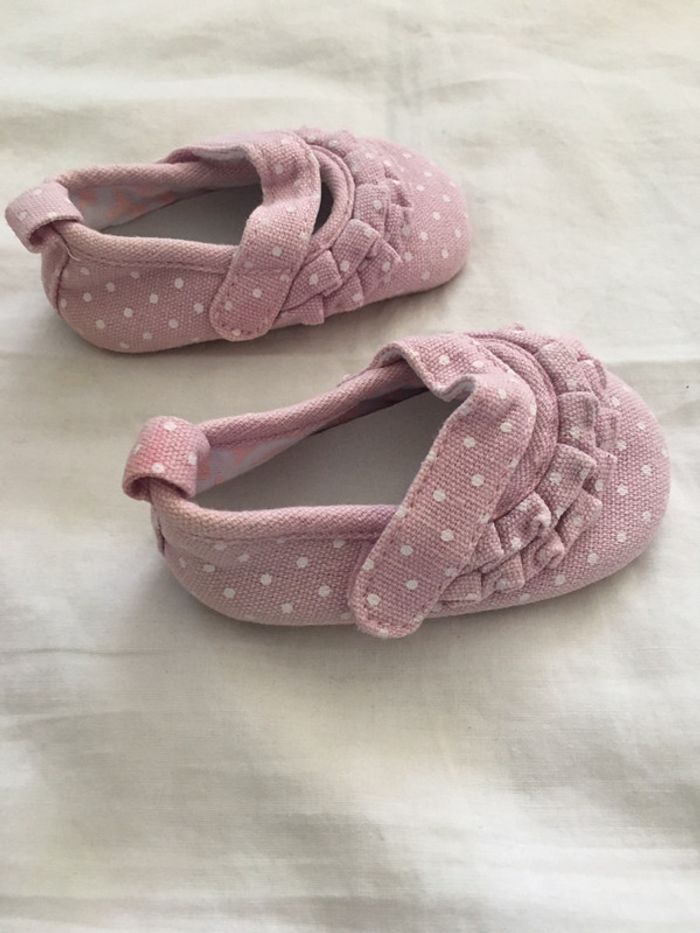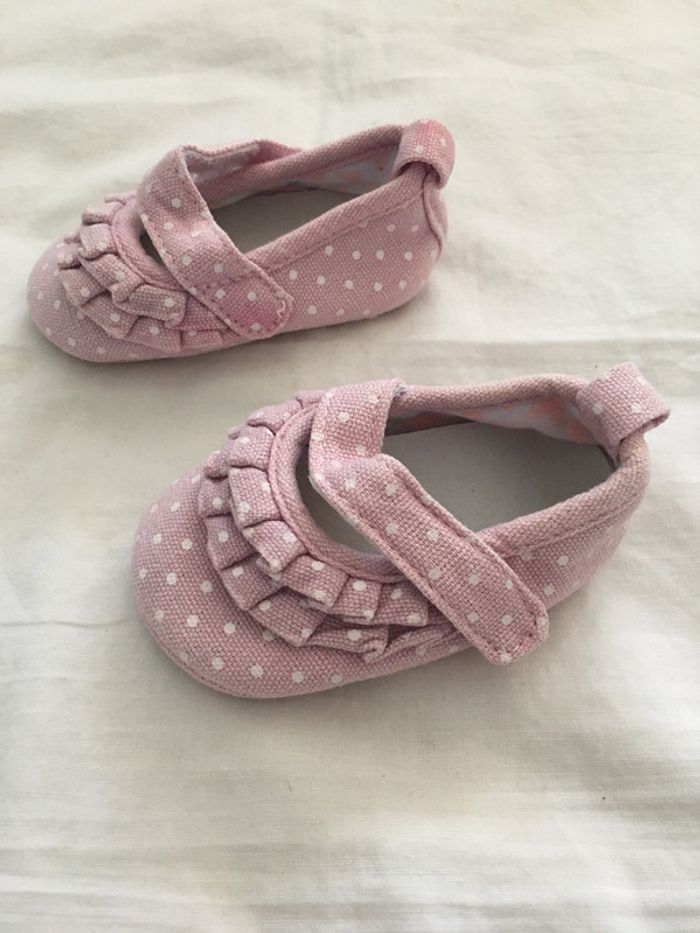 Chaussures souples roses à pois blancs en très bon état #hbifillechaussures