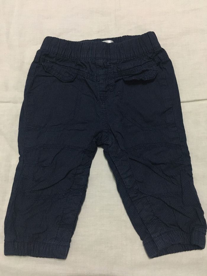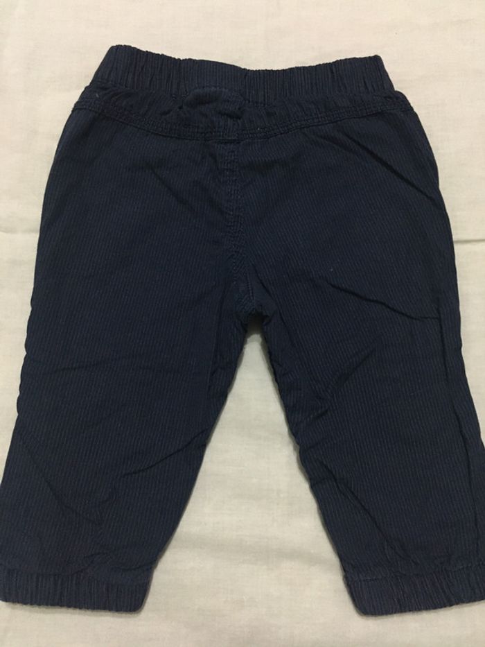 Pantalon bleu marine à rayures Kitchoun en très bon état taille 6 mois (67 cm), taille ajustable boutons à pression pour les jambes #hbigarcon6mois