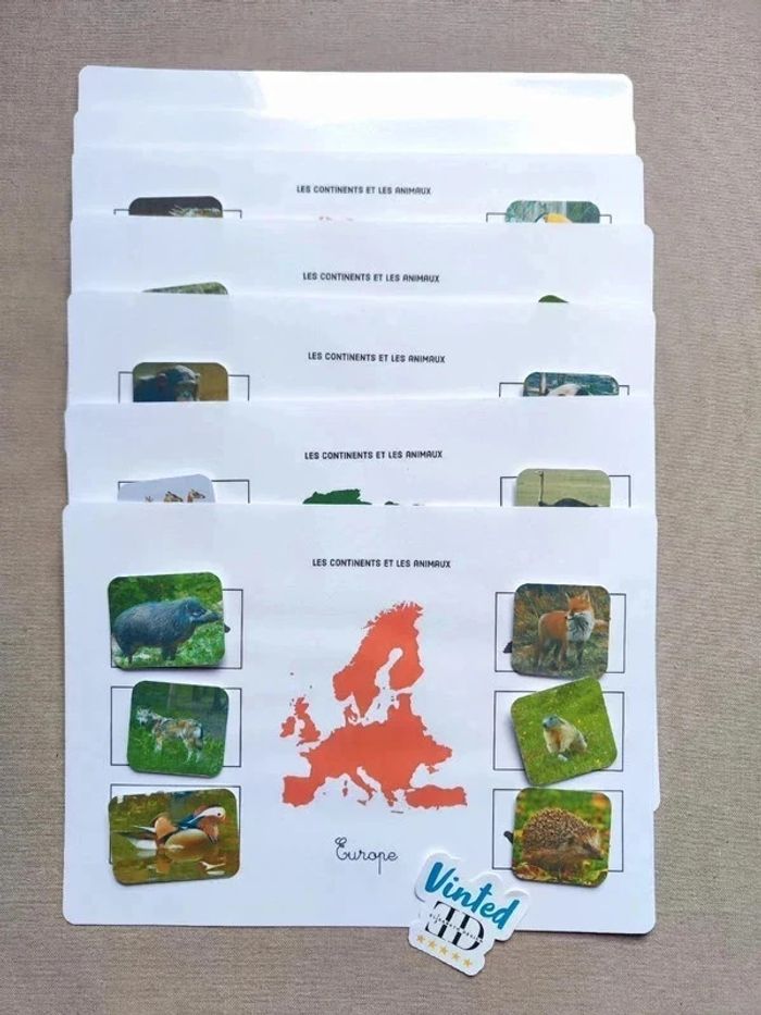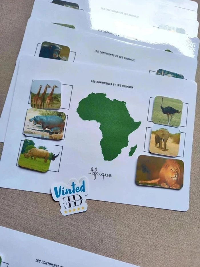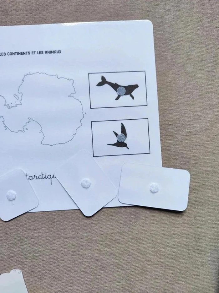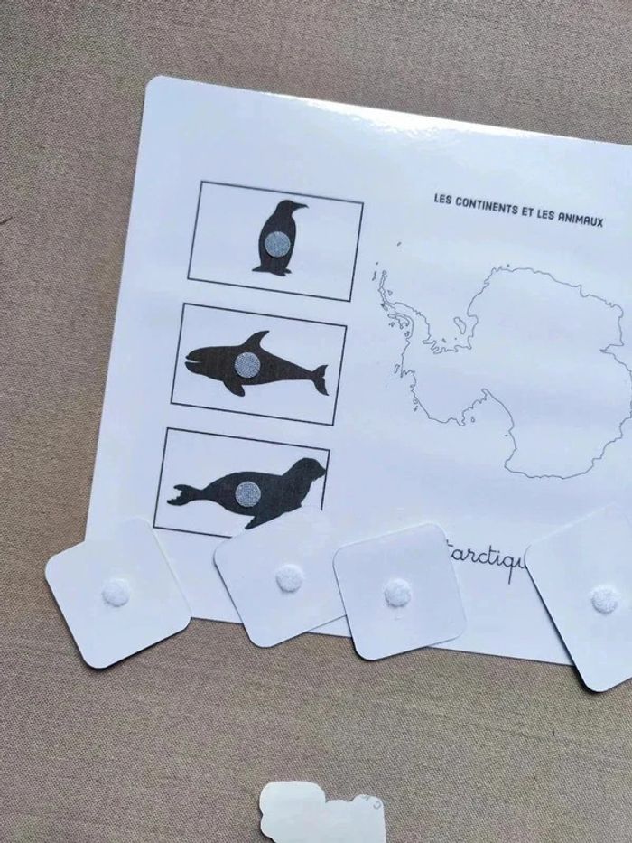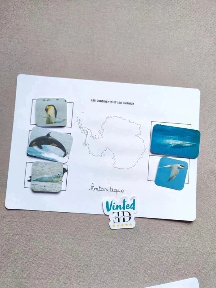 📍Lot de 7 feuilles A4 plastifiées, représentant les 7 continents avec leurs animaux les plus connus qui y vivent. 📍Permet de faire correspondre l'animal à sa silhouette, favorise l'acuité visuelle, le langage et la coordination motrice fine tout en acquérant des connaissances en géographie. 📍Papier 250G, plastifié pour une bonne tenue ! 📍Taille : A4 📍Tous les coins sont arrondis. 📍Fait mains. 📍Neuf. ⚠️ Réduction de - 15% si vous prenez la découpe en charge. - Les scratchs seront fournis avec. 👉Pour trouver d'autres activités c'est par ici : 🔎#elisabethdesignDécouverteduMonde 📫⏳ Envoi rapide et soigné le jour même de l'achat dans la mesure du possible! 🤝 Frais de port ajusté au plus bas.