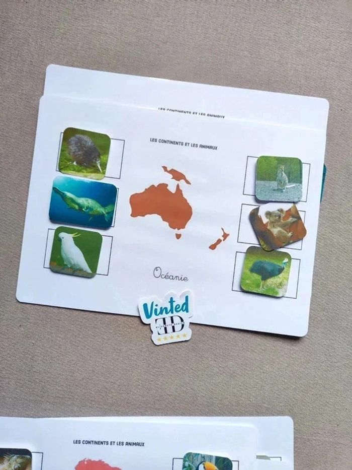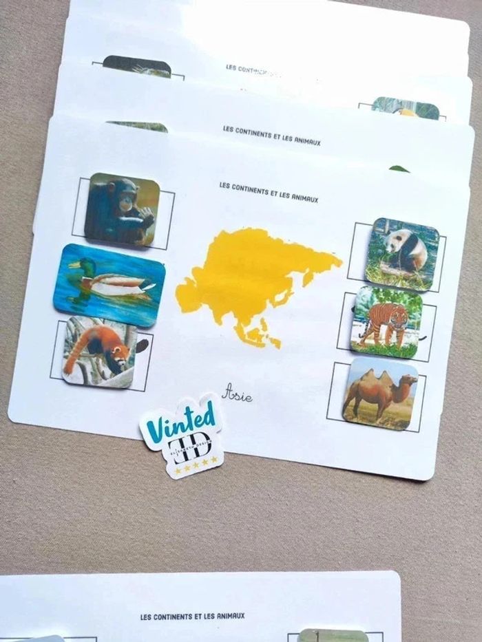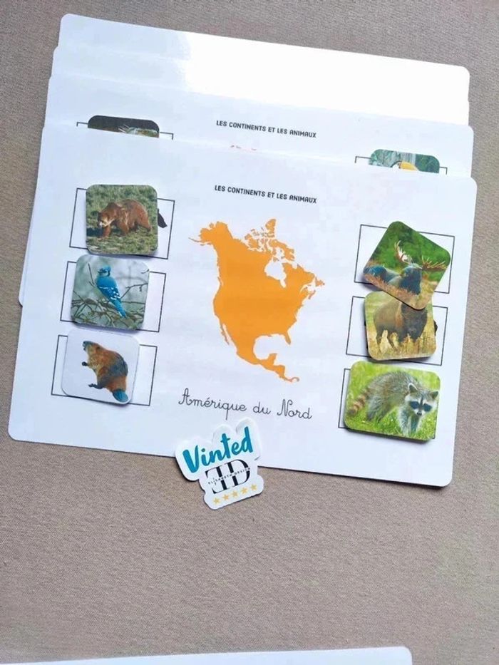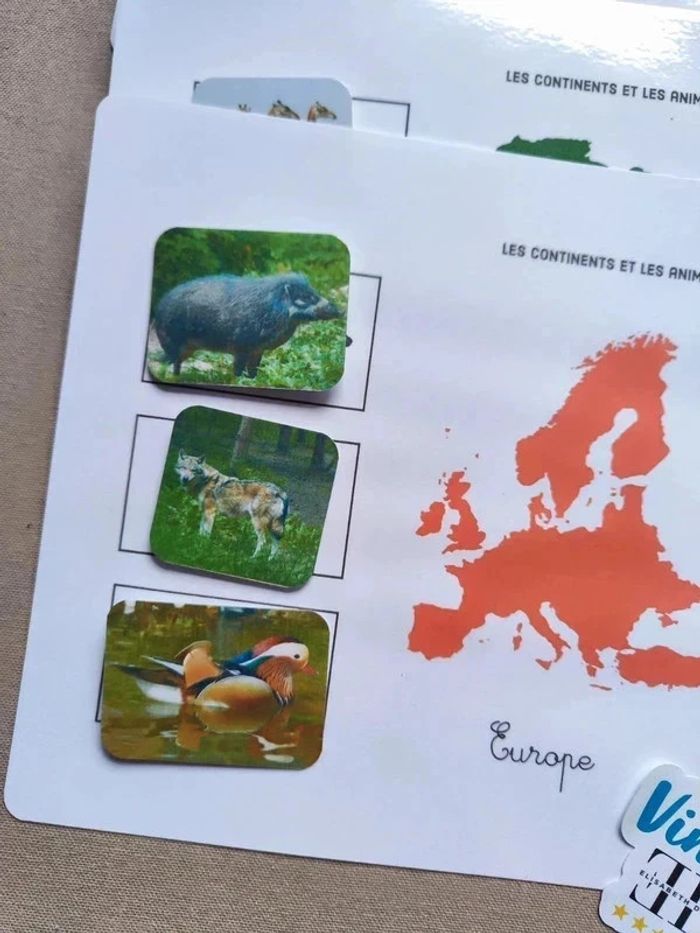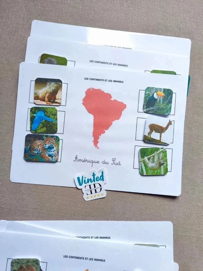 📍Lot de 7 feuilles A4 plastifiées, représentant les 7 continents avec leurs animaux les plus connus qui y vivent. 📍Permet de faire correspondre l'animal à sa silhouette, favorise l'acuité visuelle, le langage et la coordination motrice fine tout en acquérant des connaissances en géographie. 📍Papier 250G, plastifié pour une bonne tenue ! 📍Taille : A4 📍Tous les coins sont arrondis. 📍Fait mains. 📍Neuf. ⚠️ Réduction de - 15% si vous prenez la découpe en charge. - Les scratchs seront fournis avec. 👉Pour trouver d'autres activités c'est par ici : 🔎#elisabethdesignDécouverteduMonde 📫⏳ Envoi rapide et soigné le jour même de l'achat dans la mesure du possible! 🤝 Frais de port ajusté au plus bas.