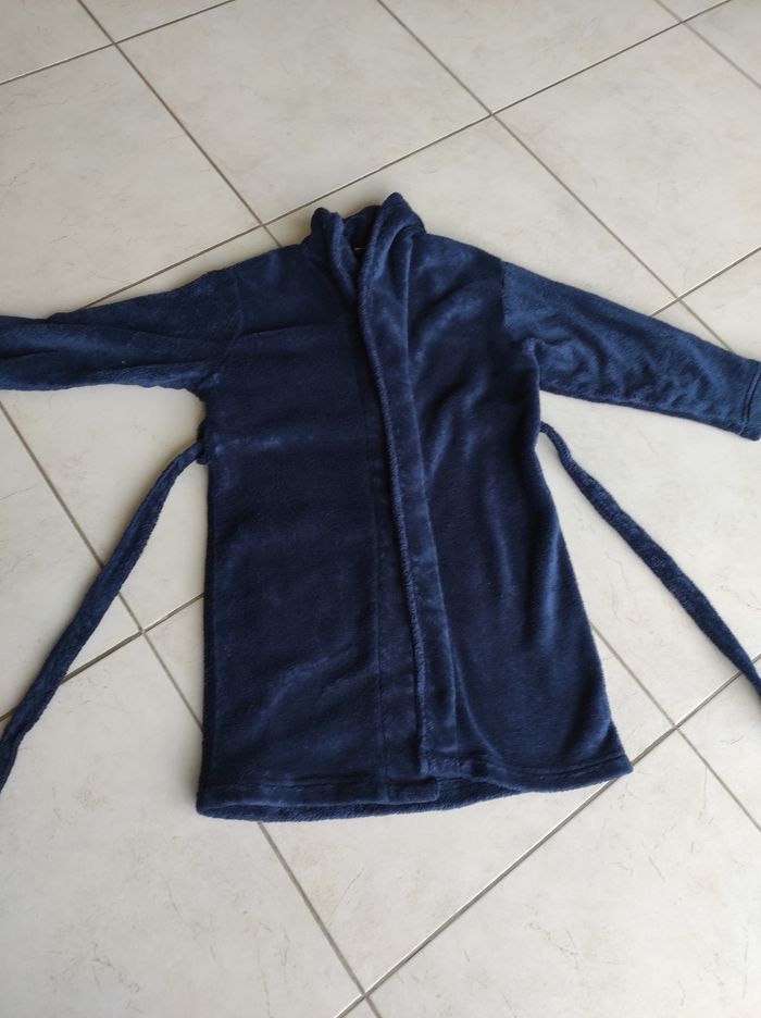 Robe de chambre 8 ans en très bon état. Fermeture avec ceinture. Bleu marine. 2 poches . Très douce