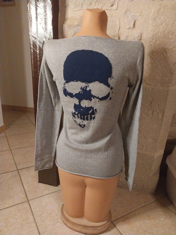 Nous mettons en vente ce magnifique pull femme Best Mountain taille s. Pull très original avec sa tête de mort dans le dos. Hauteur 56cm Épaules à Épaules 38cm Longueur manche 58cm Très bon état.