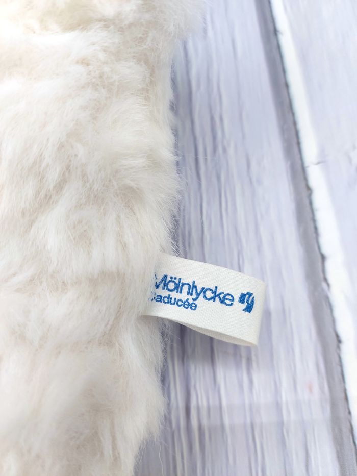 Peluche doudou ours chat blanc Mölnlycke Caducée 20 cm yeux durs Vintage ?