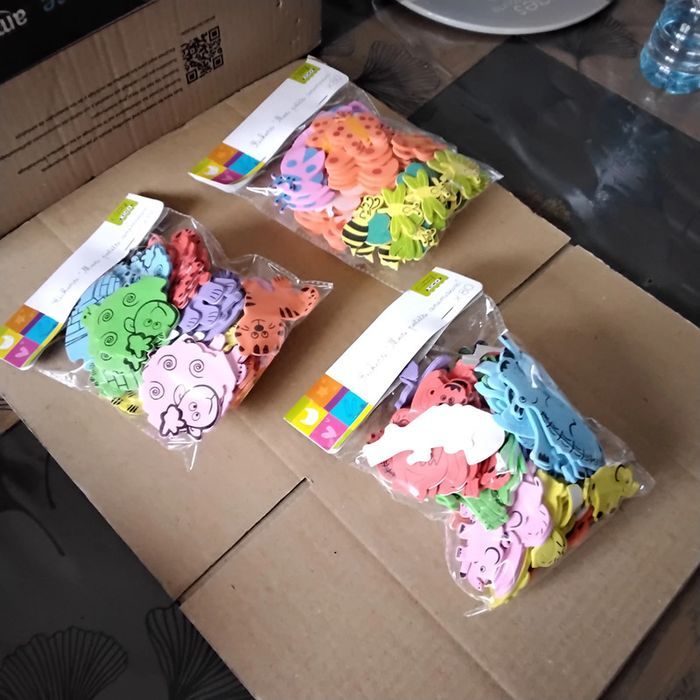 Lot de 3 paquets de stickers mousse animaux 80 stickers par paquet Coccinelle, papillons, libellules Crocodile, éléphants Moutons, tigres, tortues TOUT NEUF #lamadelon_jouets_bébé