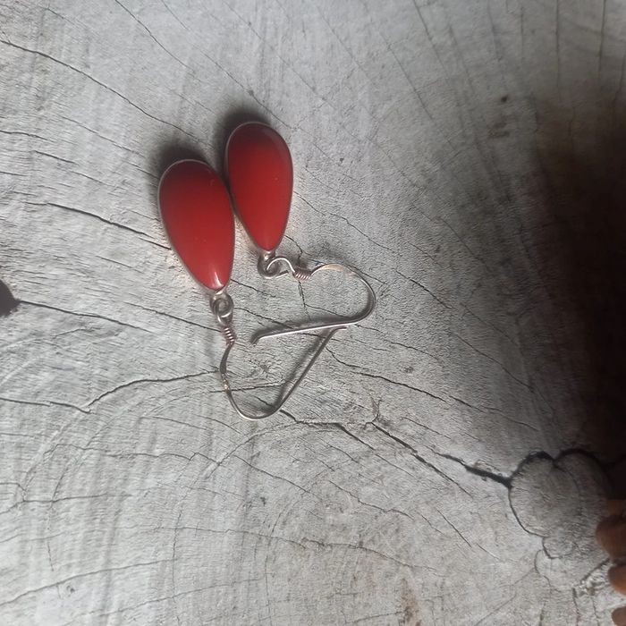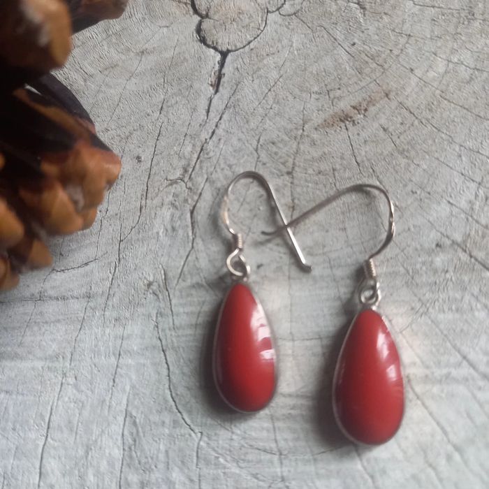 Jolie boucles d'oreilles vintage pendantes rouge bordeaux