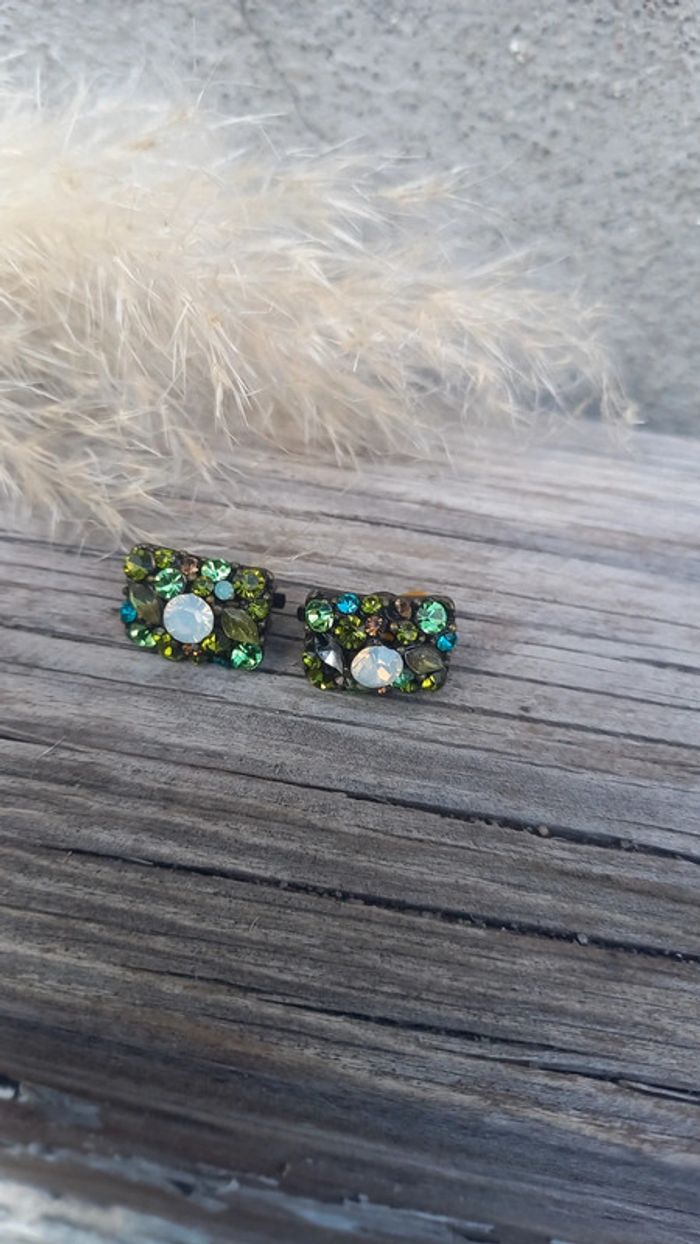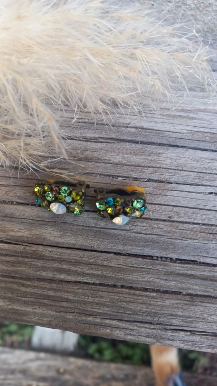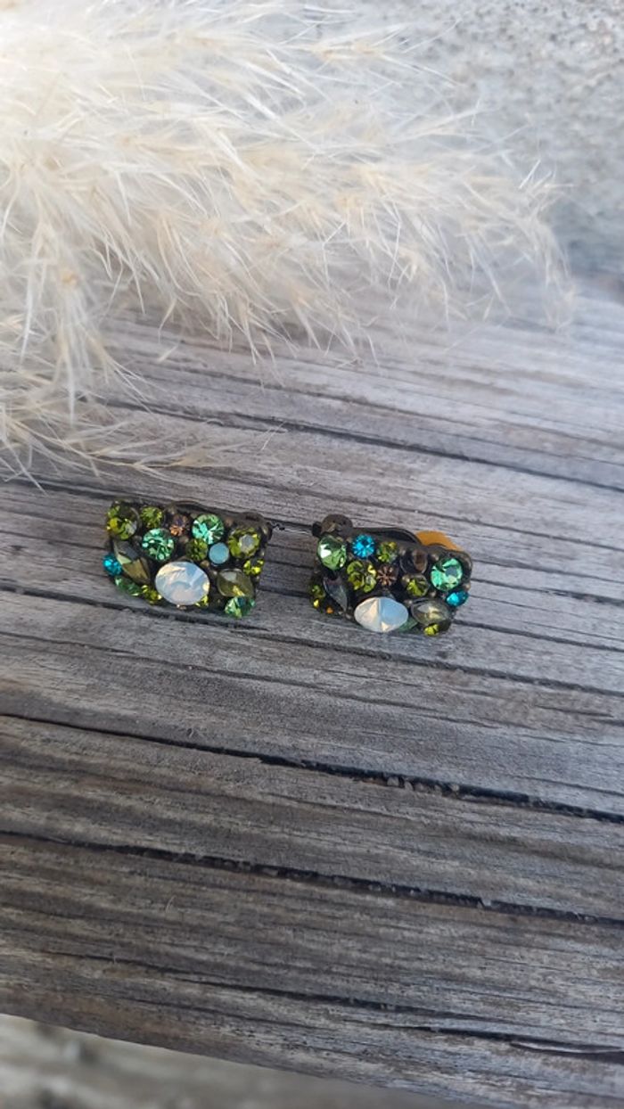 Jolies boucles vintage clips Camaïeu de vert bleu