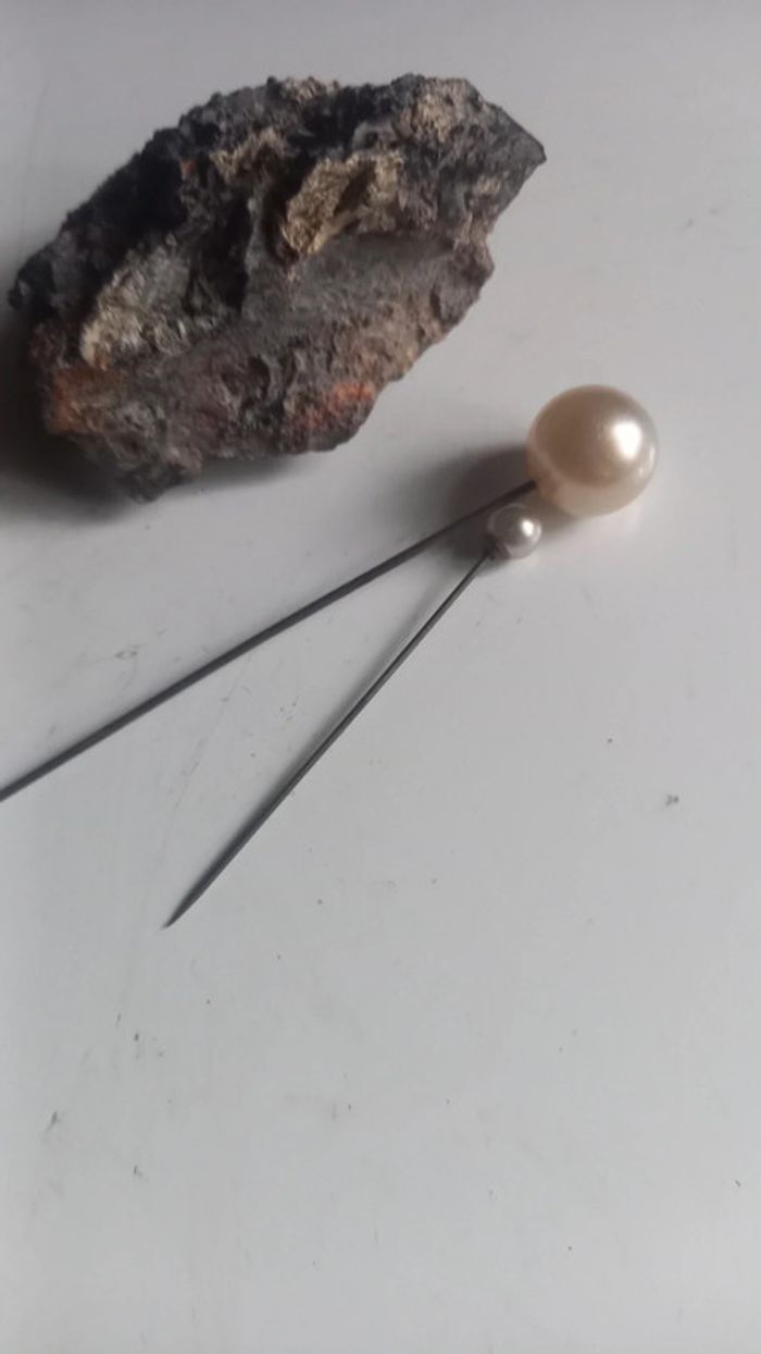 2 pics à chapeau vintage perles 1 grand 8 cm 1 petit 4 cm
