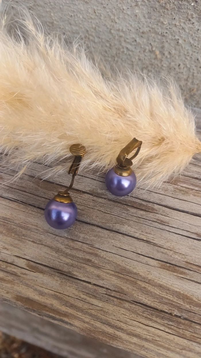 Boucles d'oreilles lilas vintage - photo numéro 2