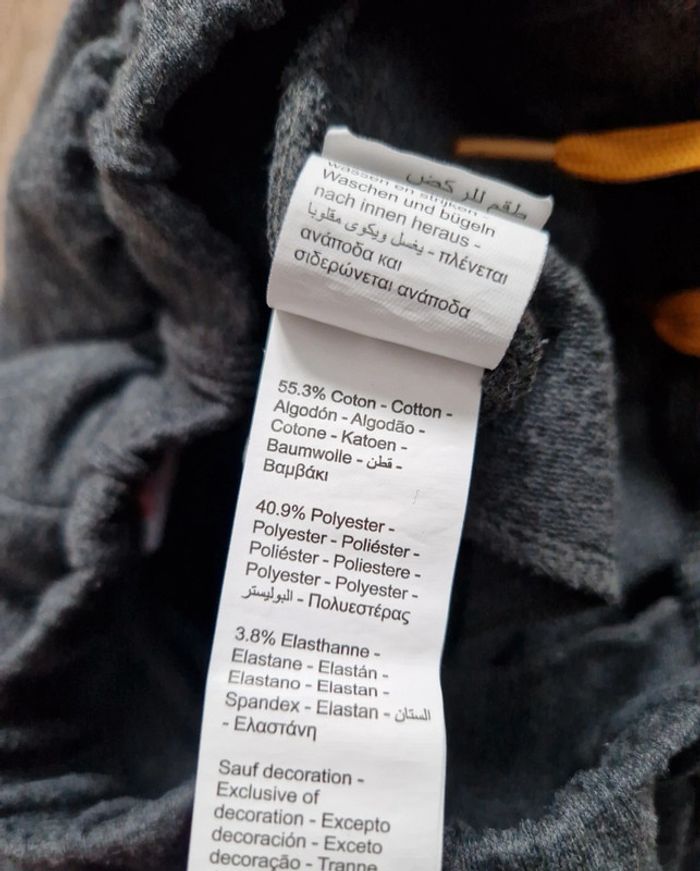 Pantalon gris avec mains de Mickey et inscription hug me #sarahzajacgarcon6a #sarahzajacfille6a