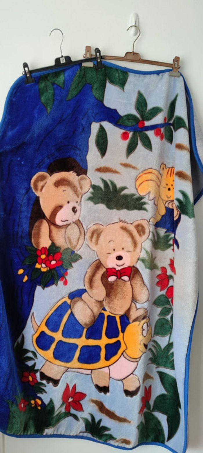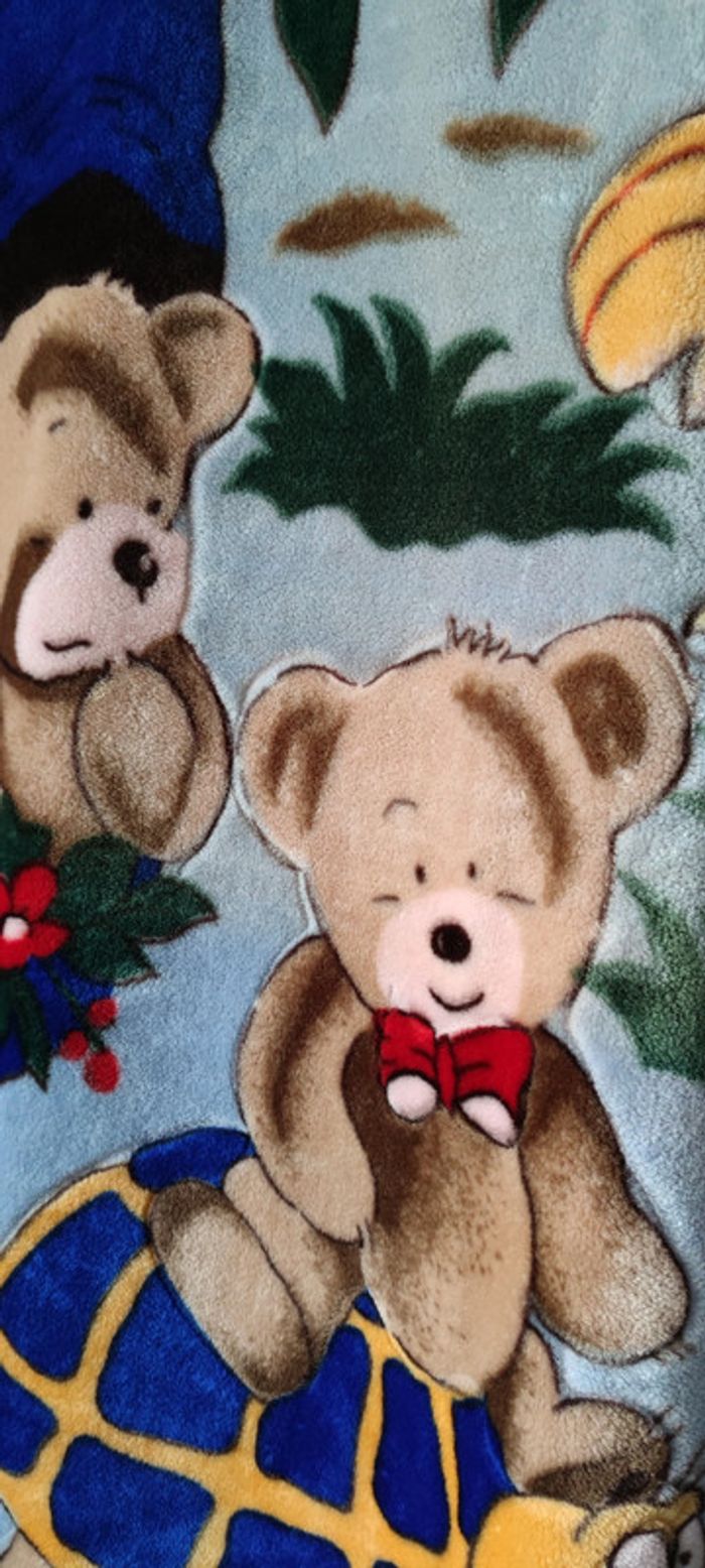 Grande couverture oursons multicolore, toute douce et chaude. Mesure : 140x110 cm - T. TU. * TRES BON ETAT COMME NEUVE *