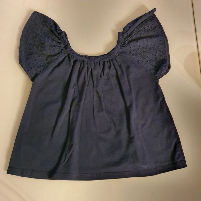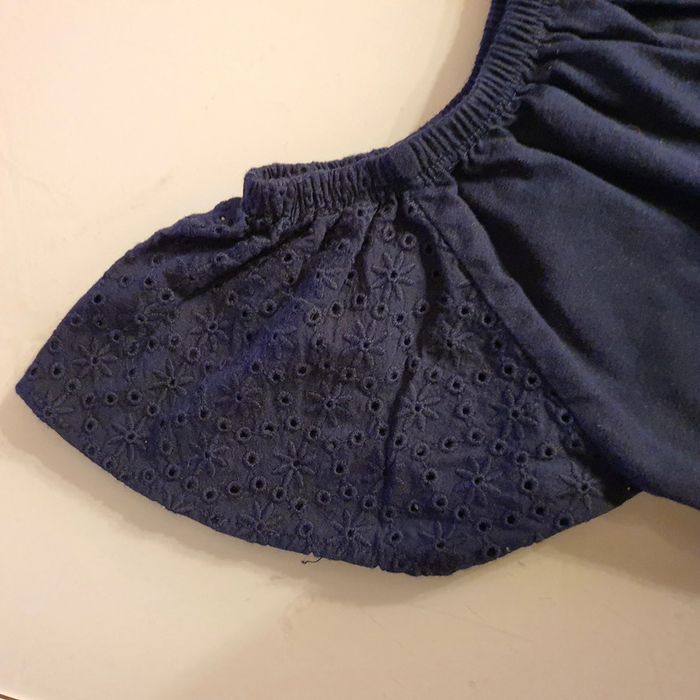 Blouse , manches volant en dentelle anglaise, col élastiqué.