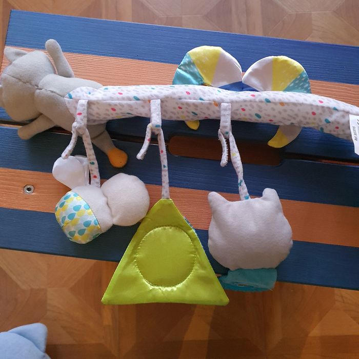 Un mobile pour amuser bébé pendant les voyages ! Facile à ventouser sur la vitre de la voiture Multi-activités : miroir, hochet, anneau de dentition,… L 18 x l 7 x h 23 cm
