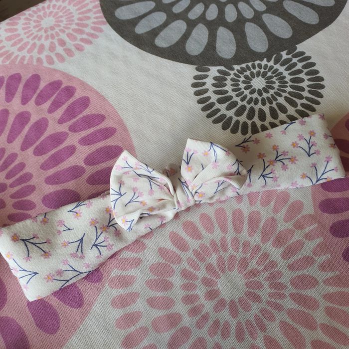 Ensemble tee-shirt manches courtes imprimé fleur, boutons pressions sur l'épaule + legging uni parme + bandeau
