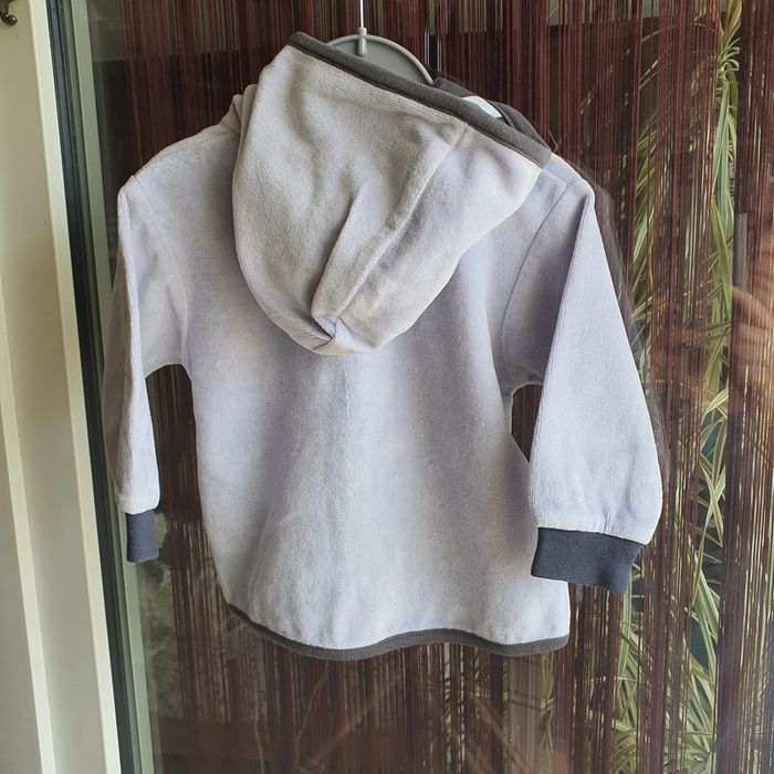 Gilet gris (velours) motif brodé "raton laveur" fermeture par fermeture éclair