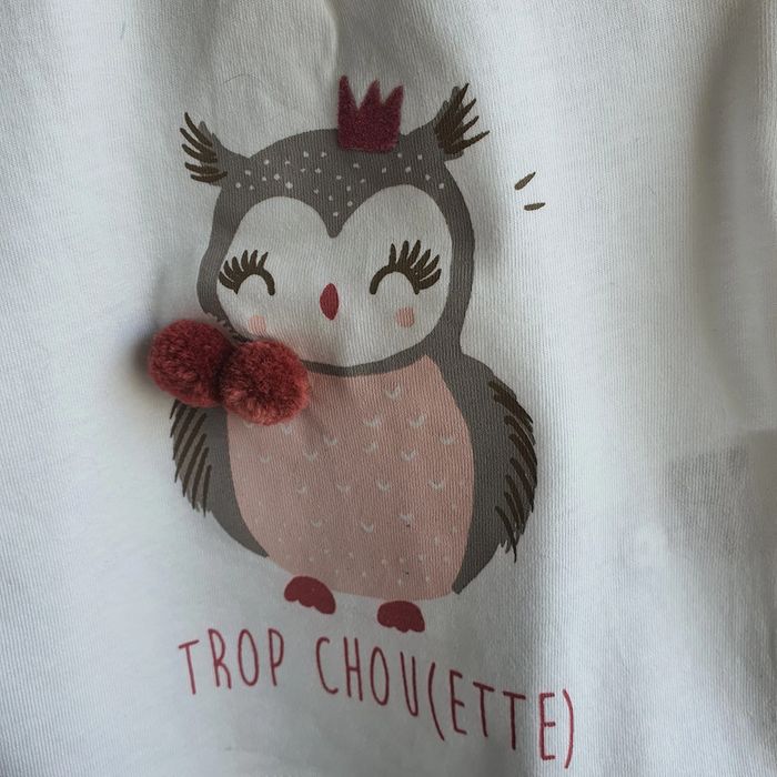 Tee shirt manches longues blanc avec motif chouette