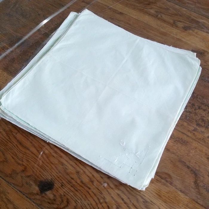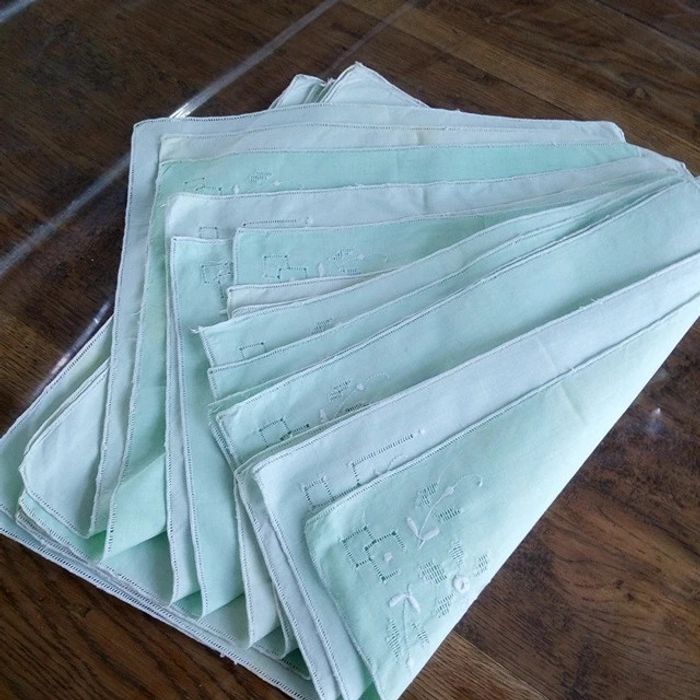 #stef62180_vintage Vend un lot de 15 carré Vert brodé Couleur plus ou moins passée et tachés #tissubrodé #brodé #vintage