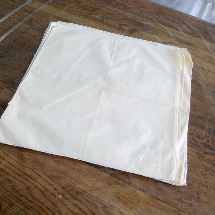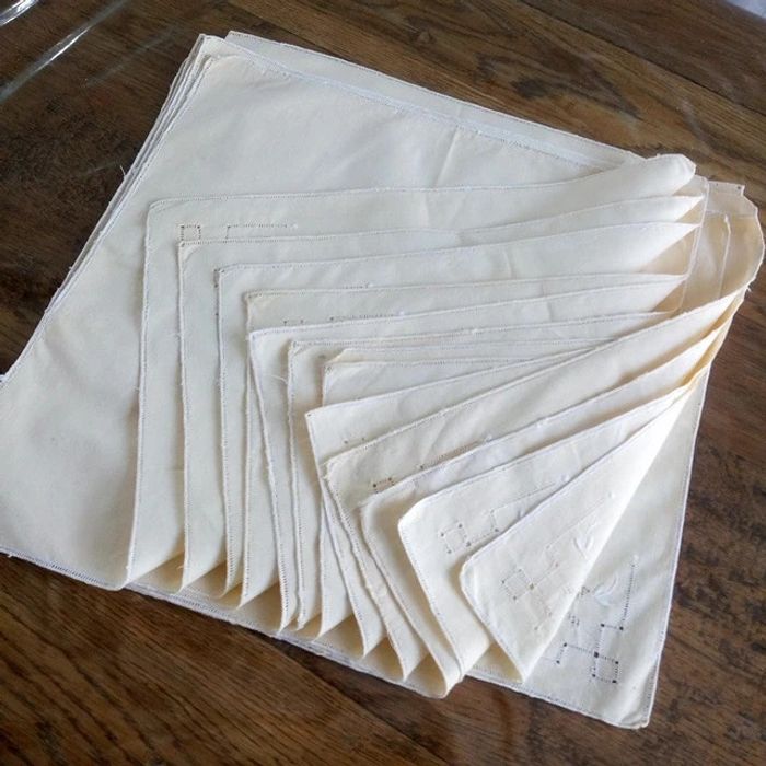 #stef62180_vintage Vend un lot de 14 carré de couleur jaune brodé Plus ou moins taché #tissubrodé