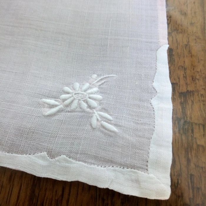 #stef62180_vintage Vend un carré rose motif fleur brodé J'ai également un autre linge de maison même collection