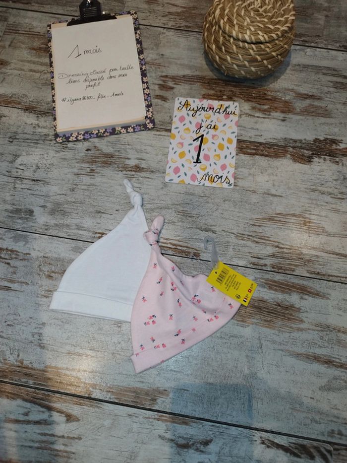 Bonnet 1/3 mois Neuf Marque petit bisou Prix boutique 9€90 Dressing classé par taille #ilyana86100_fille_0et1mois