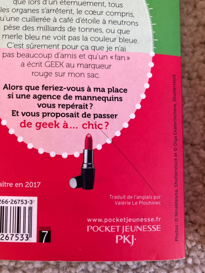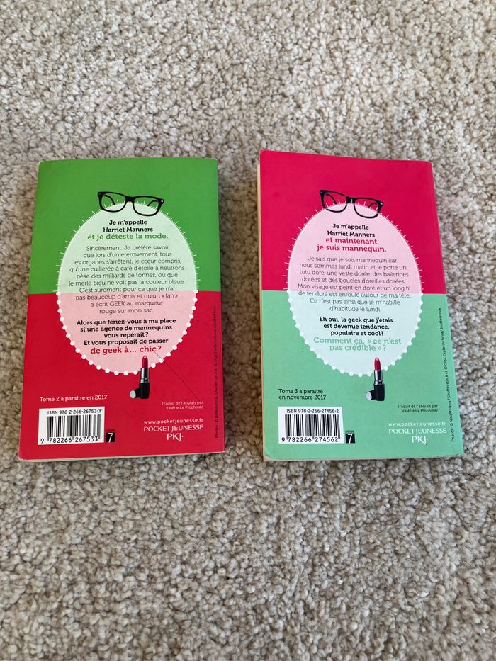 Livres de poche : Geek Girl tomes 1 et 2 Thèmes : Humour - Chick lit - Young Adult - Romance - Amitié - Adolescence best seller, dès 12 ans, qui a donné la série culte sur Netflix Je m'appelle Harriet Manners et je déteste la mode.Sincèrement. Je préfère savoir que lors d'un éternuement, tous les organes s'arrêtent, le cœur compris, qu'une cuillerée à café d'étoile à neutrons pèse des milliards de tonnes, ou que le merle bleu ne voit pas la couleur bleue. C'est sûrement pour ça que je n'ai pas beaucoup d'amis et qu'un " fan " a écrit GEEK au marqueur rouge sur mon sac. Alors que feriez-vous à ma place si une agence de mannequin vous repérait ? Et vous proposait de passer de geek à... chic ? Je m'appelle Harriet Manners et maintenant je suis mannequin.Je sais que je suis mannequin parce que nous sommes lundi matin et que je porte un tutu doré, une veste dorée, des ballerines dorées et des boucles d'oreilles dorées. Mon visage est peint en doré et un long fil de fer doré est enroulé autour de ma tête. Ce n'est pas ainsi que je m'habille d'habitude le lundi. Eh oui, la geek que j'étais est devenue tendance, populaire et cool ! Comment ça, " ce n'est pas crédible " ? PKJ (pocket jeunesse) n°J2863 et n°J2955 401 pages, 2017 389 pages, 2016 Bon état général Book novel in French - libro novela en francés - Franstalige roman - Romanzo in lingua francese - romance em língua francesa - Buch Roman auf Französisch Pour découvrir mes autres livres, faire un lot pour optimiser les frais de port et bénéficier de réductions automatiques, cliquez sur #Athilielivre #Athilieroman #Athilieenfant