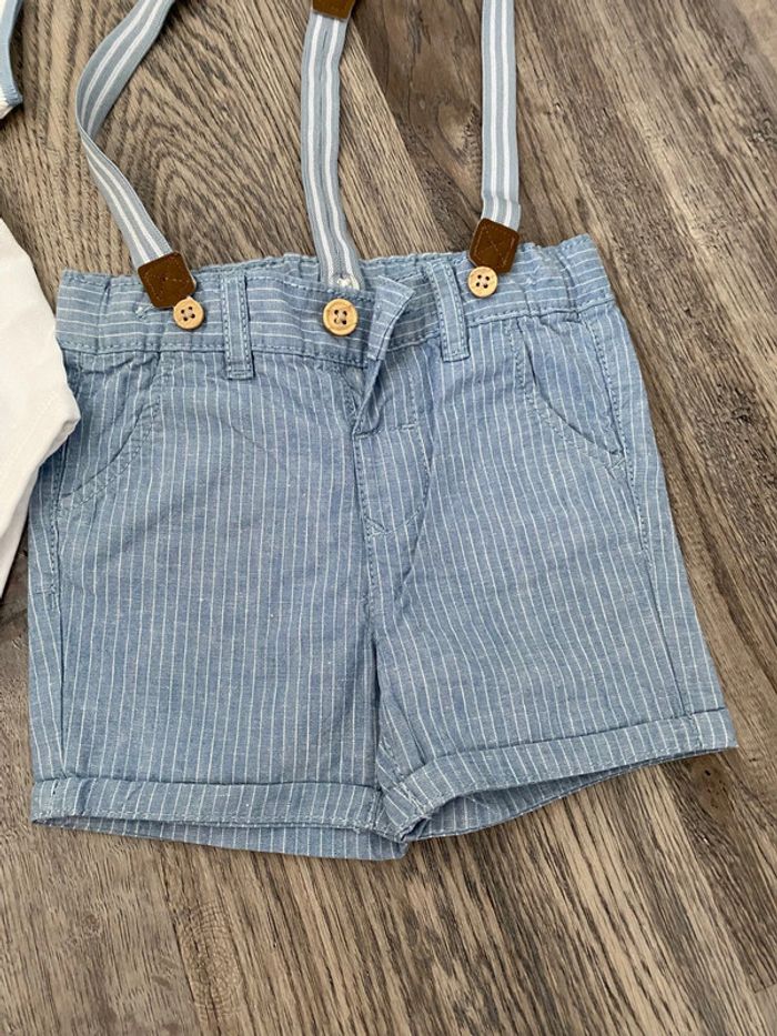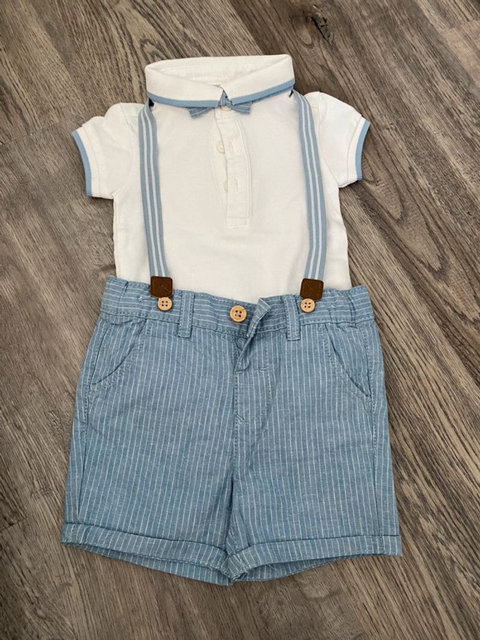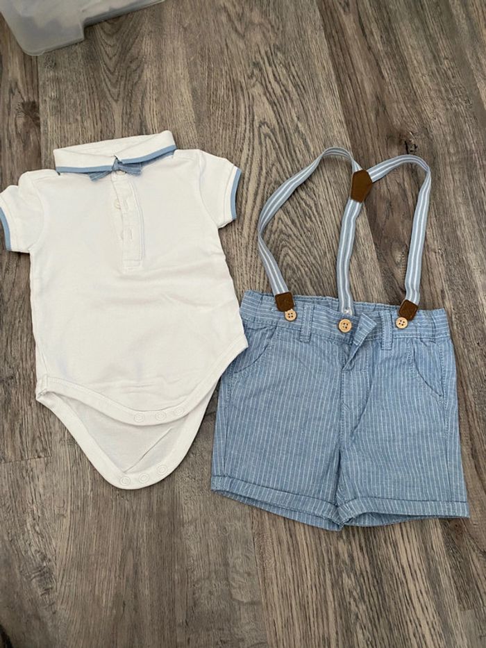 Ensemble body polo, short et bretelles 6 mois #Sarah_Garçon_6mois