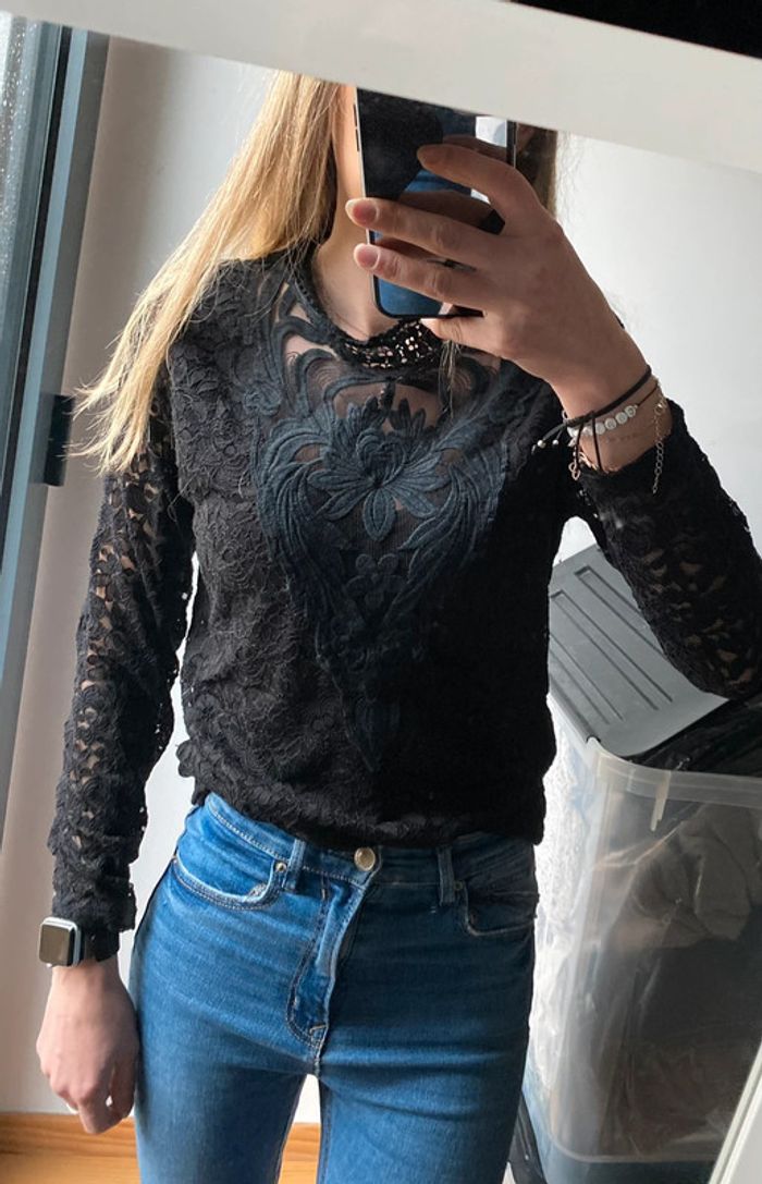 Blouse manches longues dentelle noir - photo numéro 1