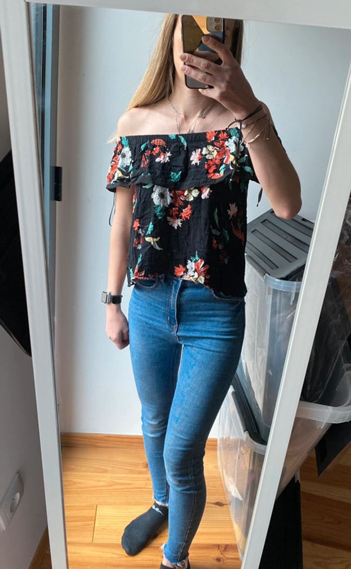 Top épaules dénudés fleuri - photo numéro 1