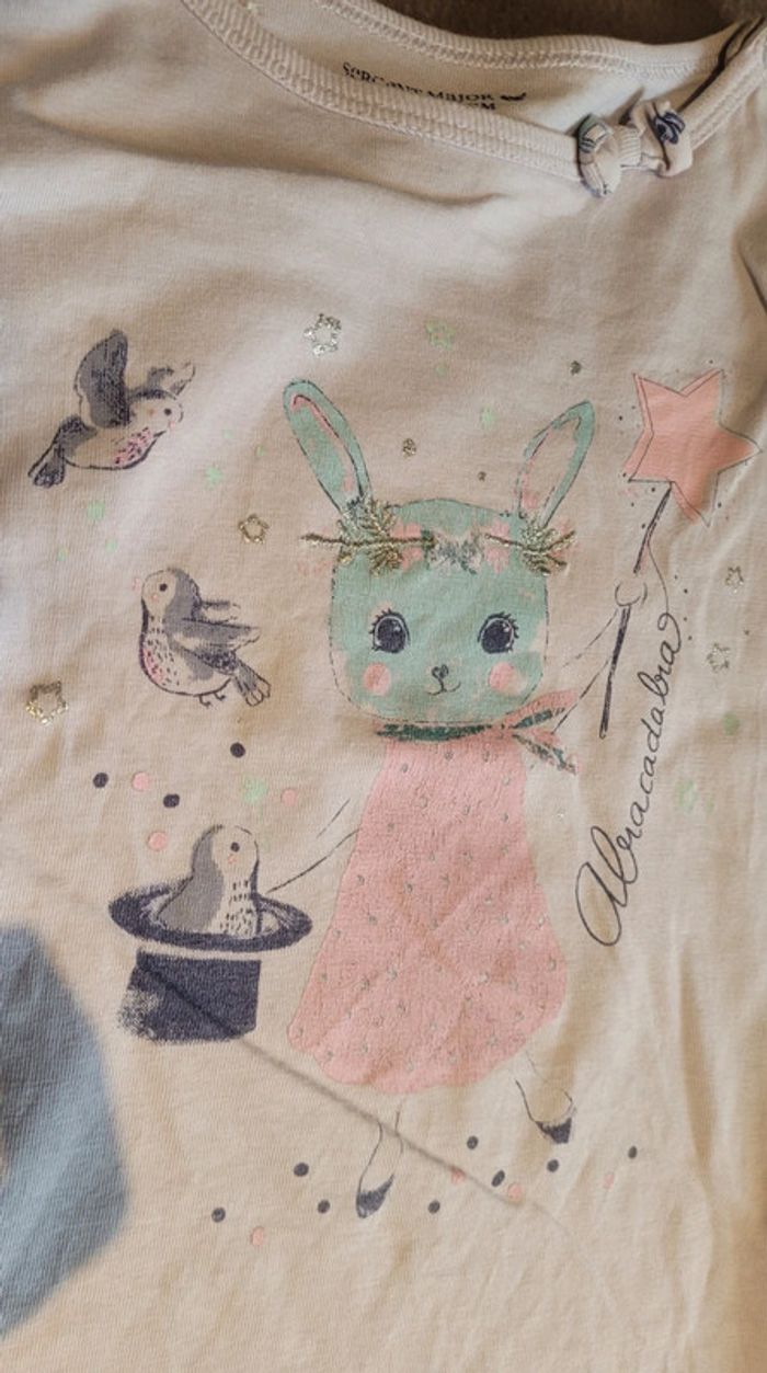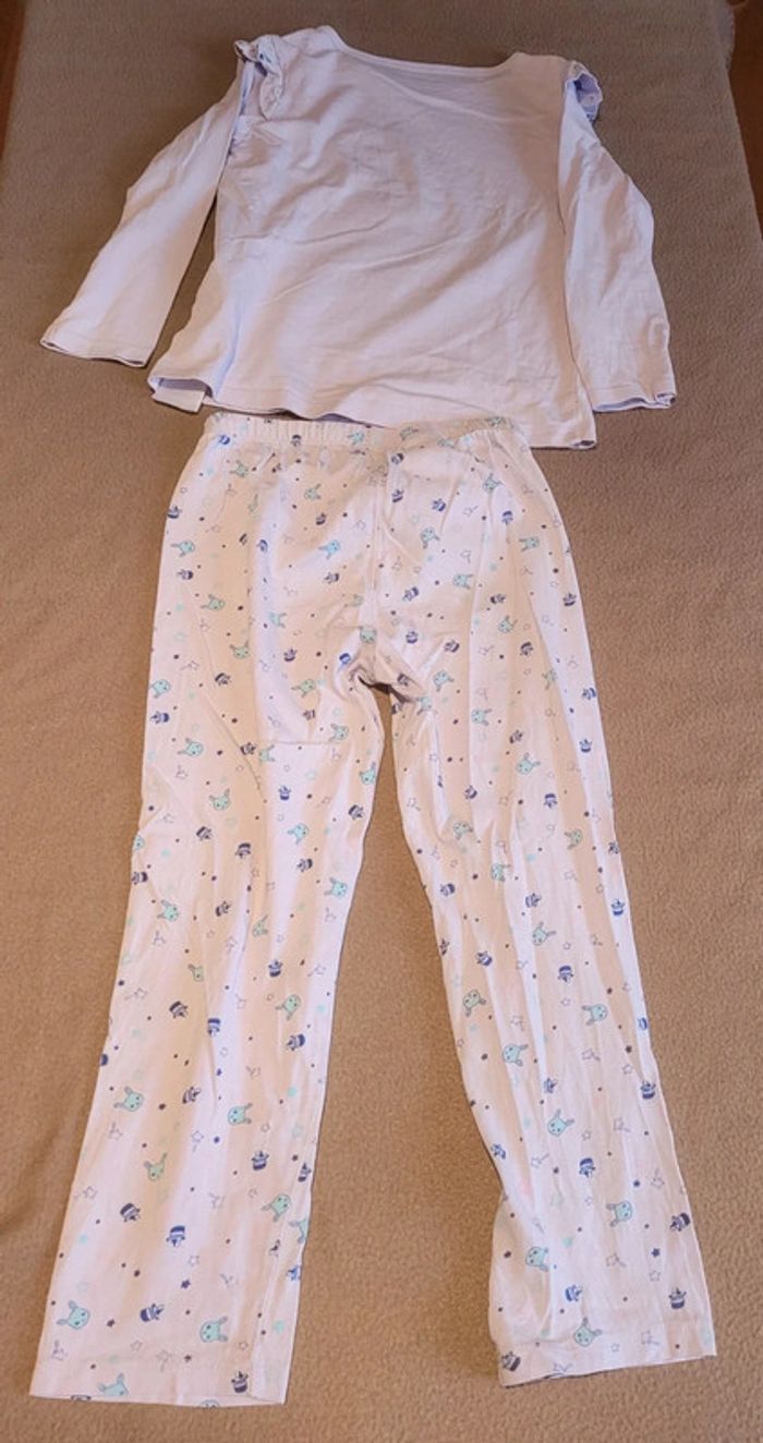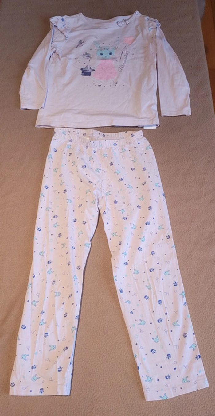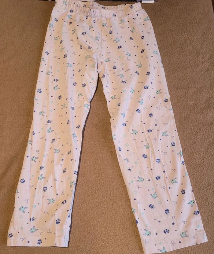 Ensemble pyjama 5 ans Motif phosphorescent Pantalon sans défaut. Sur le haut : Dessin du lapin abîmé et accro en haut derrière vers le col #5ansfillezhabou