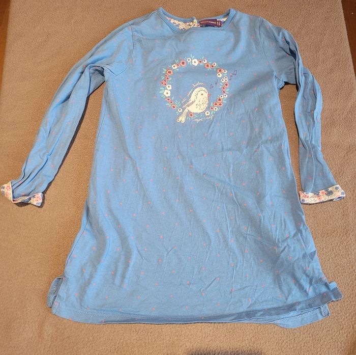 Ensemble chemise de nuit et pantalon Motif oiseau et fleurs brodées Fermeture pressions haut du dos #5ansfillezhabou