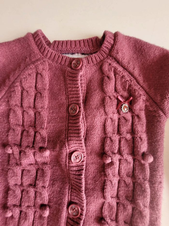 Gilet boutonné chaud Pompons relief Étiquette matière coupée #5ansfillezhabou