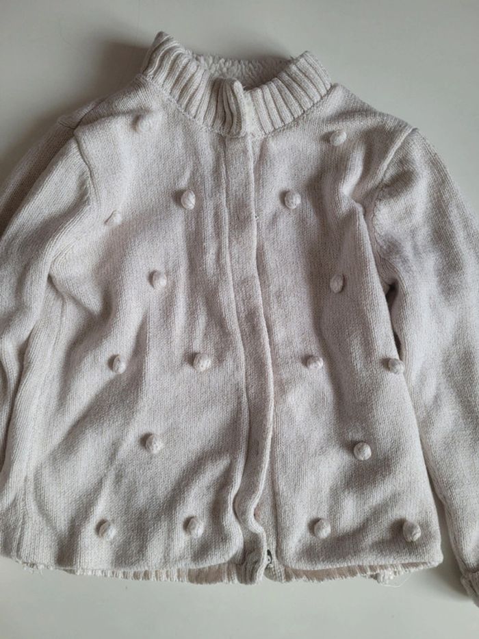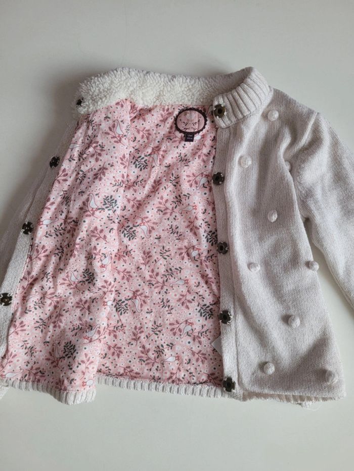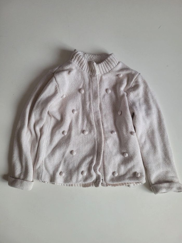 Gilet boutonné avec fils dorés Pompon relief Col chaud #5ansfillezhabou