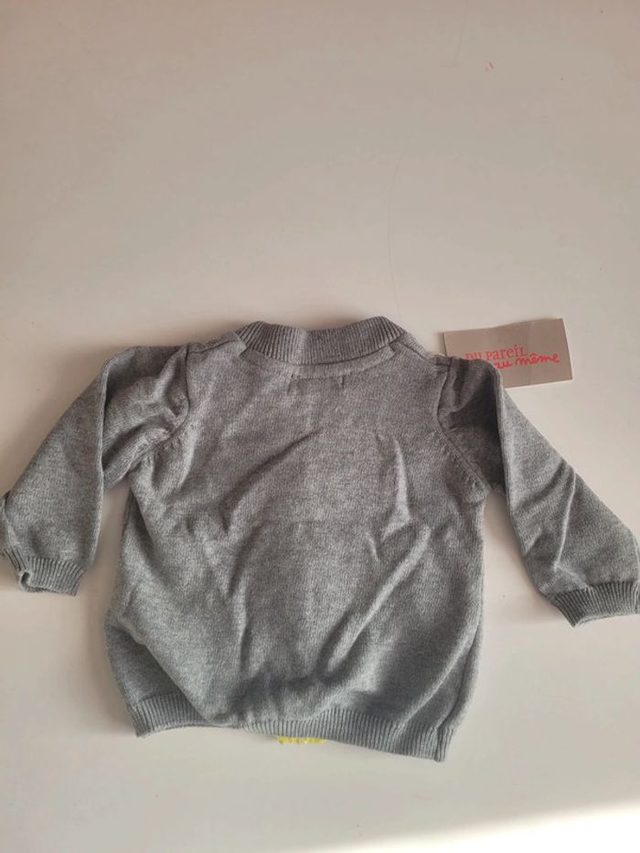 Gilet gris avec fermeture éclair jaune, dessin tête de chien. Taille 3 mois #3moisgarcon #3moisgarconzhabou
