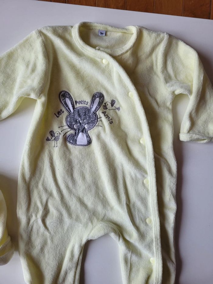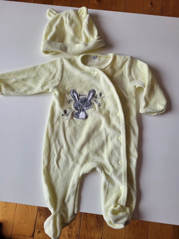 Pyjama ouverture pressions en plastique devant Et son bonnet Motifs lapin et oiseaux Taille 3 mois Couleur anis #3moispyjamagarcon #3moisgarconzhabou