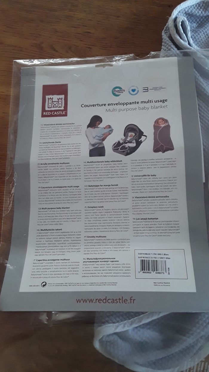 Couverture enveloppante multi usage Babynomade de Red Castle Couleur gris/blanc Utilisable dès la naissance. Matière jersey de coton fleur de coton. Utilisée 2 fois.
