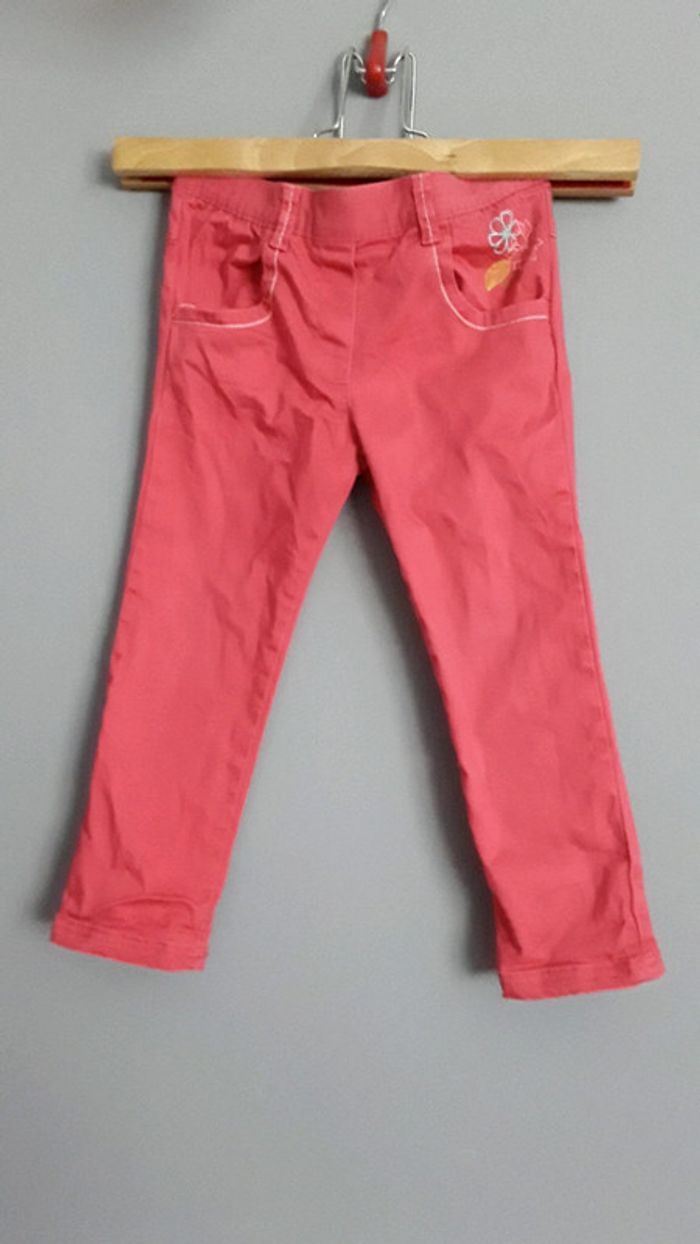 Pantalon rose taille pratiquée. Motifs fleurs sur 1 poche. Taille 3 ans