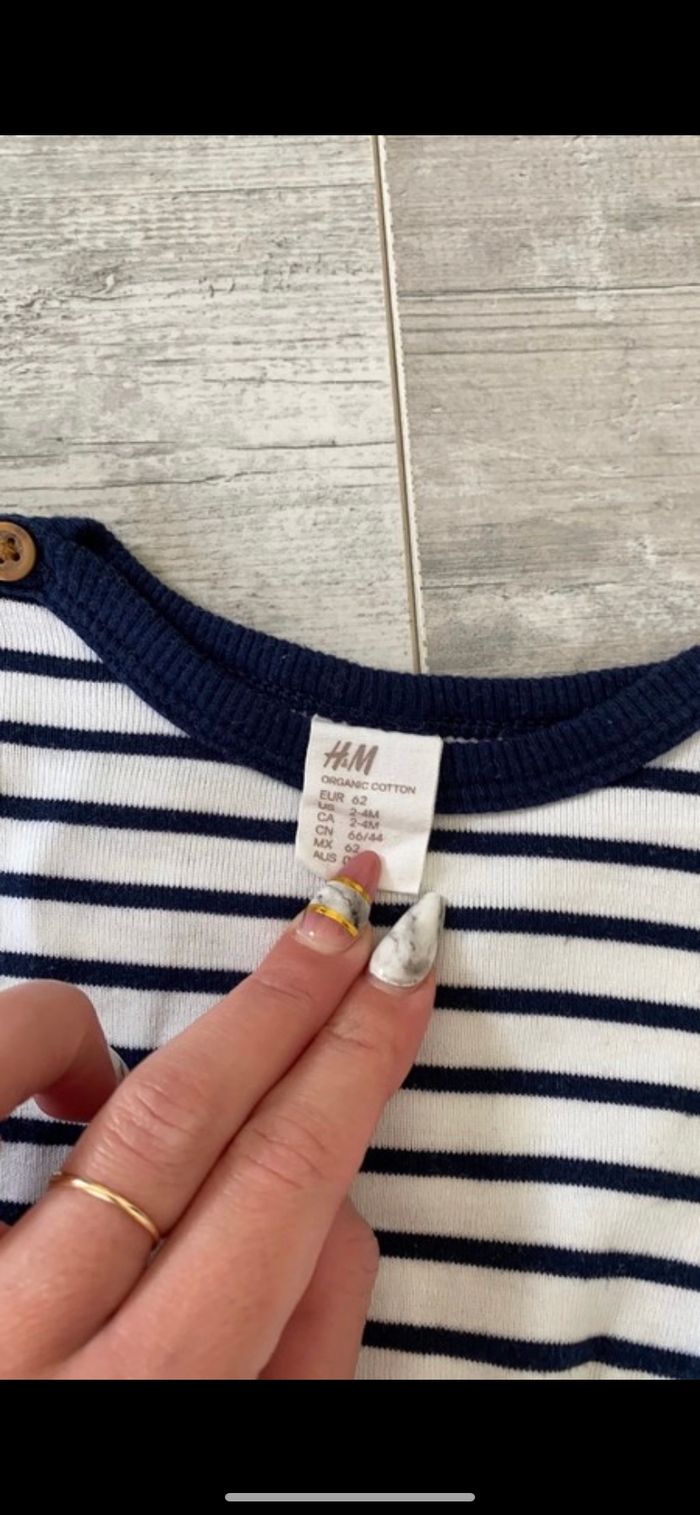T-shirt à rayure blanc et bleu de chez h& m en 2/4mois