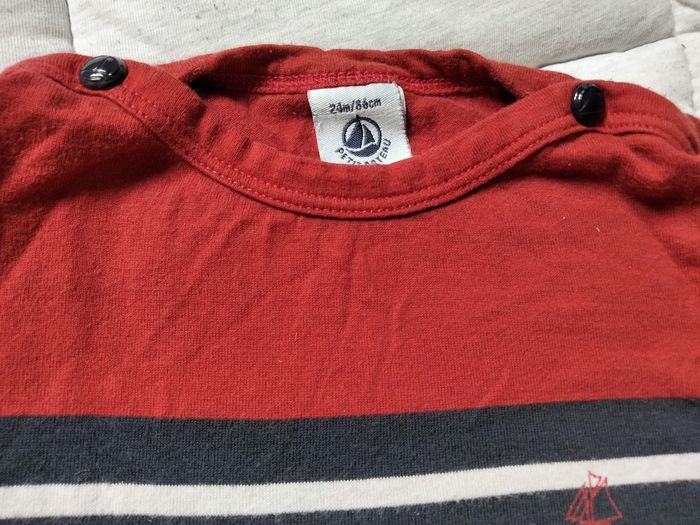 Tee short manches courtes Petit Bateau ⛵ 24 mois Rouge/bleu marine Pression a chaque épaule #jujudugue-24mois