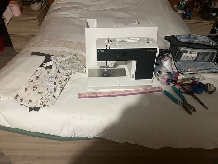 Vend machine à coudre de la marque PFAFF neuve servi 2fois. Je vends la machine à coudre avec ses accessoires + le sac de rangement pour accessoires, c’est neuf . Je vends également du ouates et du tissus, fermeture éclair, livre patron. Le tout 915€ Machine à coudre + accessoires: 850€