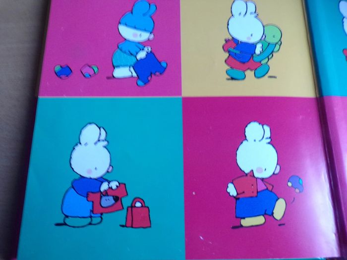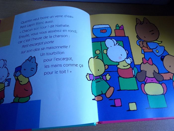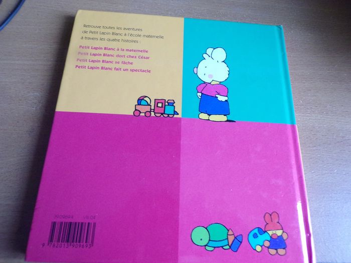 Livre Petit lapin blanc à l'école les coins du livre a peine abimer + la derniére page un peu abimer