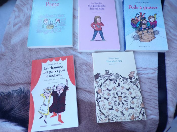 Lot 5 livres l'école des loisirs Mes parents sont dans ma classe, Namouk et moi, Poils a gratter, Les chaussures sont parties pour le week end, Pomme Les coins des livres a peine abimer