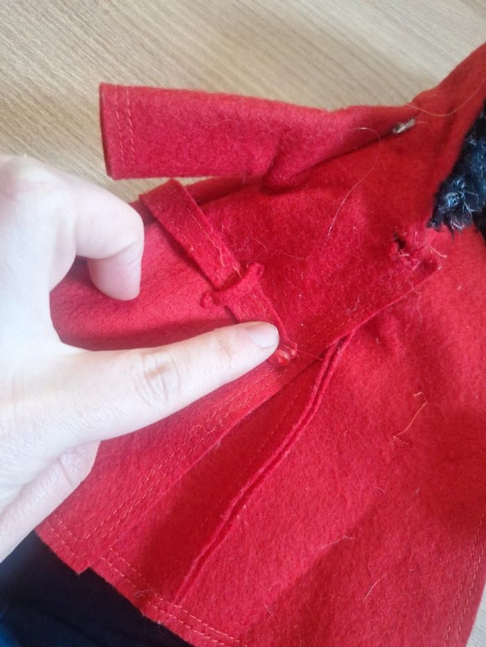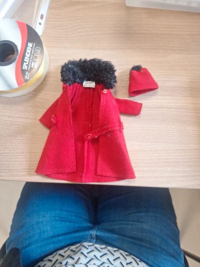 1964! manteau de Barbie Fashion Mattel - It's Cold Outside (rouge) vintage Mattel 819 col de (fausse) fourrure noire Très élégant Avec son bonnet ponpon Des réparation minim à prévoir Voir photo #zaceci28jouet