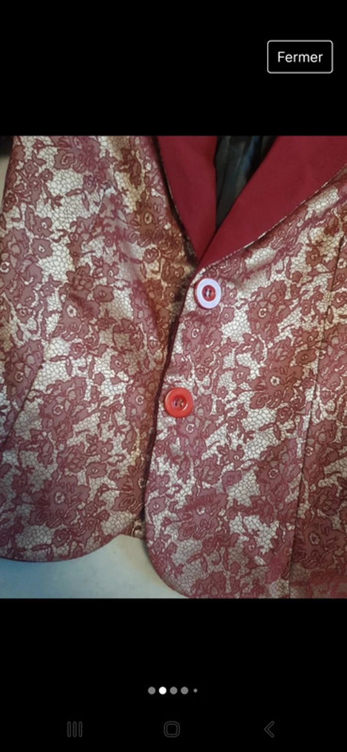 Mise 1 fois comme neuf 2 bouton Veste de fête ou pour occasion Bordeaux motif fleuri Original simple joile unique remarquable Écrit xl mais un 38 #zaceci2838 Motif type fleur Blazer