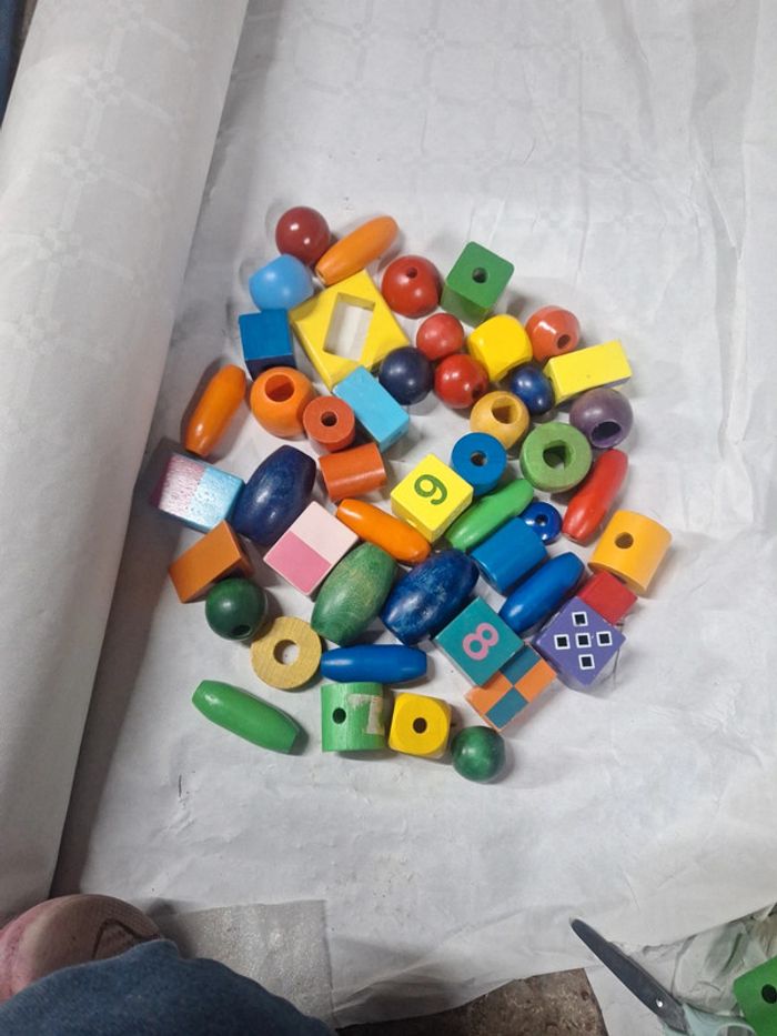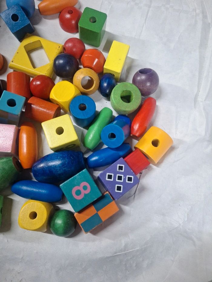Carrée rectancle rond oval cube Très grosse et grosse couleur orange jaune bleu vert violet rose En bois 48 perles Très bon et bon etat voir photo #zaceci28jouet