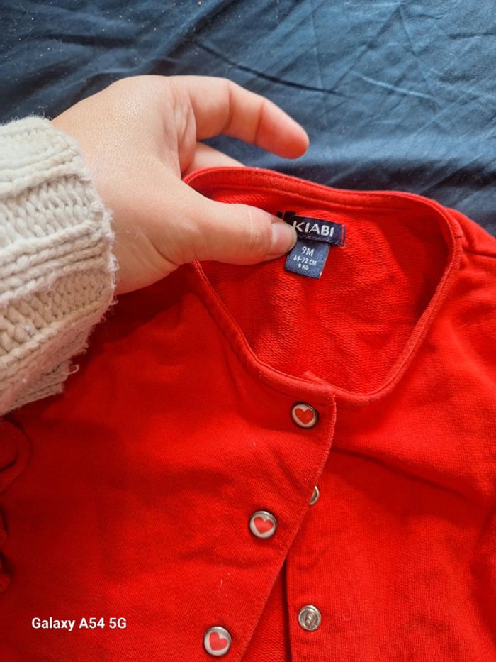 Gilet rouge bouton coeur 9 mois - photo numéro 1