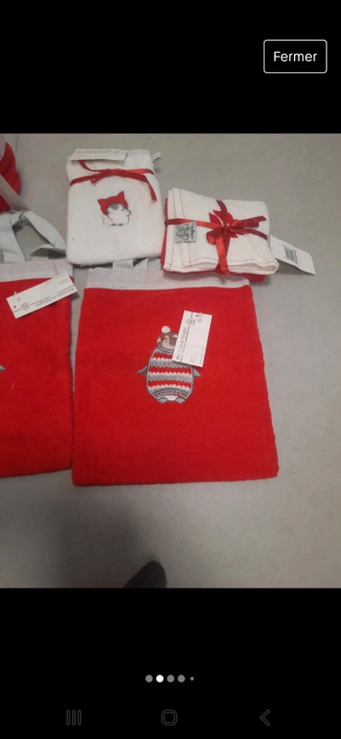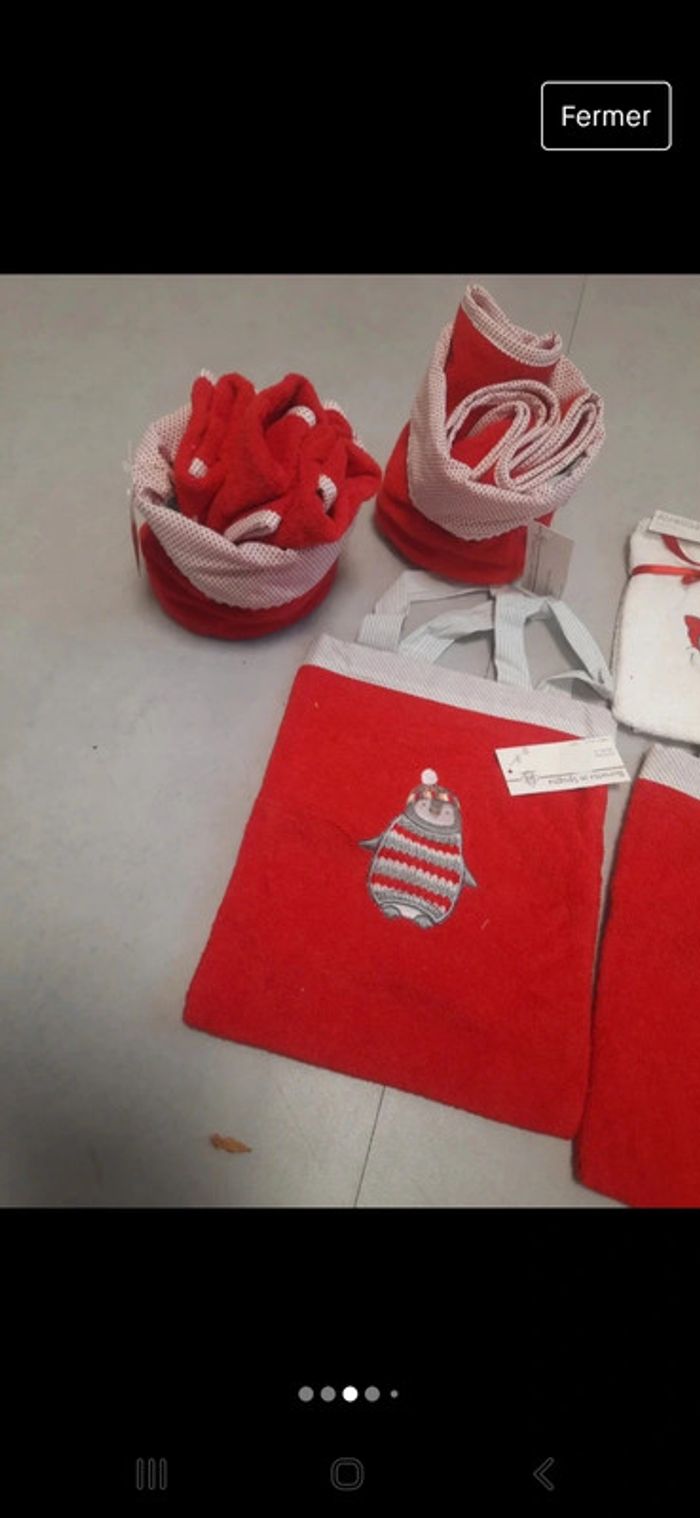 Lasilla Neuf Composer 2 lavettesLot ensemble petite serviettes rouge et blanche et sac bouche et moustache 30 x 30 #zaceci28accessoire Idéal cadeau de Noël 1 gant pingouin 15 x21 Et serviette 30 x 30 2 Terry bag pingouins en éponge Rayé gris en bordure 20 x 30 2 corbeilles en eponge avec 3 serviettes de 30 x 30 chacune bordure petit points Prix d'achat 130euros 100pourcent coton Je vends des rideaux rouge sur une autre annonce #zaceci28vaisselle #zaceci28deco #zaceci28puericulture
