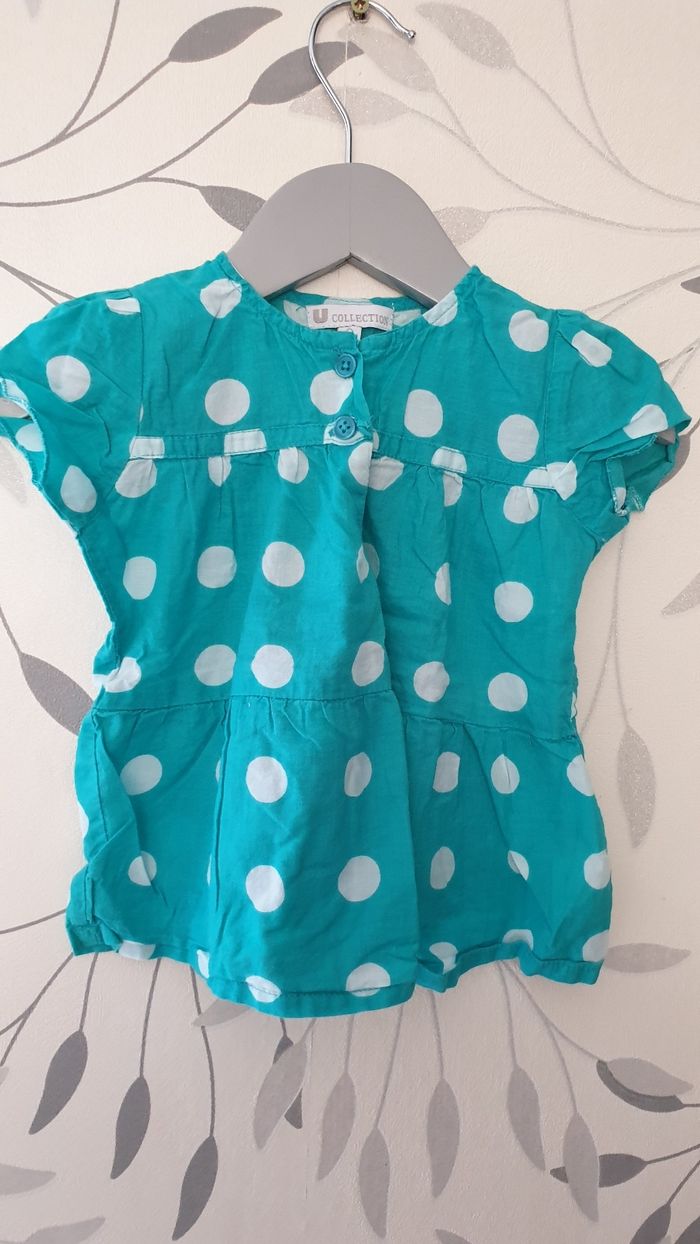 Tunique turquoise et blanc marque U collection taille 6mois très bonne état