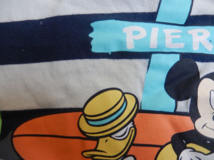 Vends ensemble t-shirt/short Mickey et Donald, taille 86 cm, bon état général, une légère tâche au-dessus du chapeau de Donald