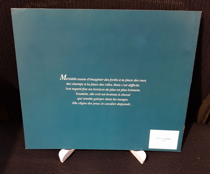 Mérédith essaie d'imaginer des forêts à la place des rues, des champs à la place des villes. Mais c'est difficile. Son regard fixe un horizon de plus en plus lointain. Soudain, elle voit un homme à cheval qui semble galoper dans les nuages. Elle cligne des yeux ; le cavalier disparaît... Collection Pastel. Édition souple Format 285x230 ISBN 2211024386 déc-94 Très Bon État, légères marques/pliures sur couvertures, intérieur TBE, sans écritures. Une imposante liste de livres pour enfants disponible, essayez un premier contact :) Poids : 190 g